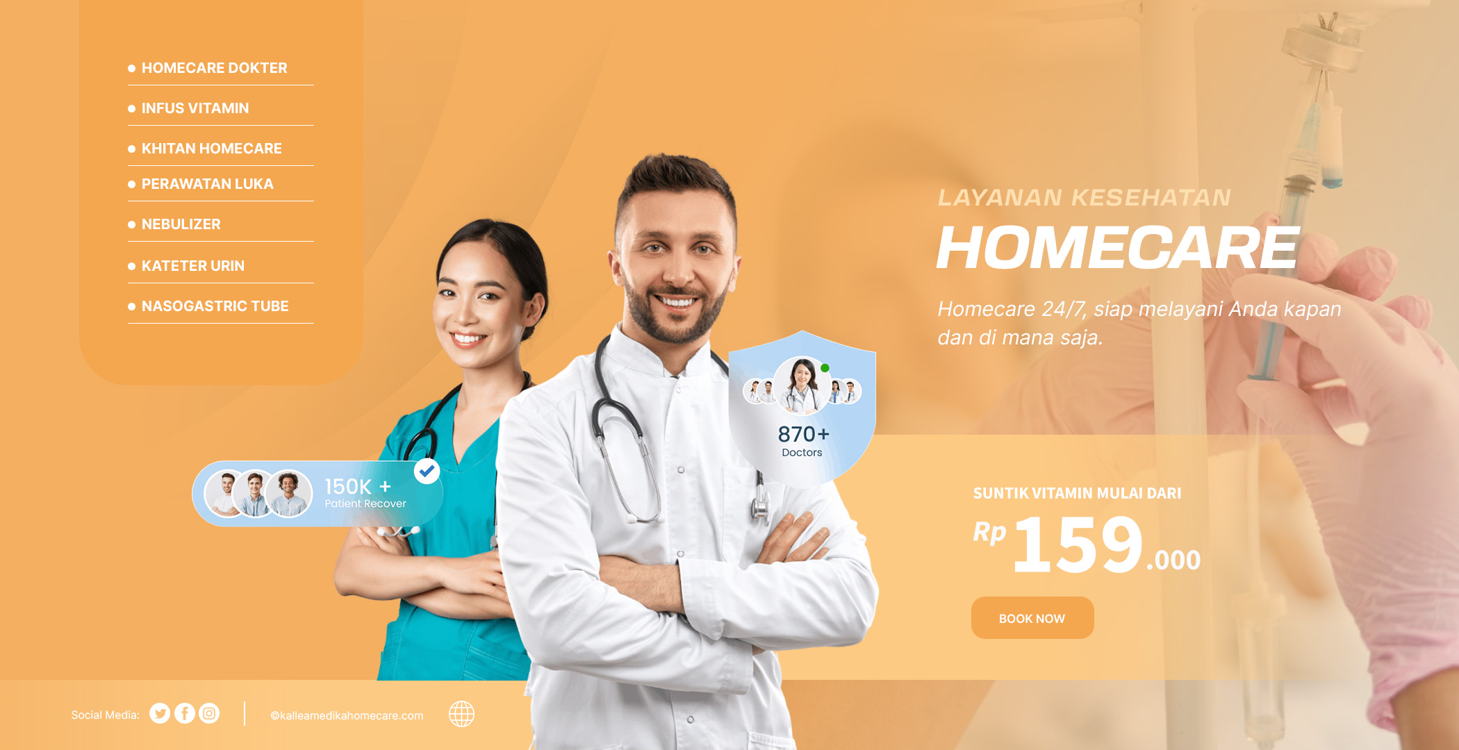 Kami adalah menyediakan layanan homecare yang berdedikasi memberikan solusi medis langsung di rumah Anda. Kami melayani panggilan dokter ke rumah, infus vitamin, perawatan luka, khitan homecare, dan pemasangan alat medis seperti kateter urin dan NGT.
